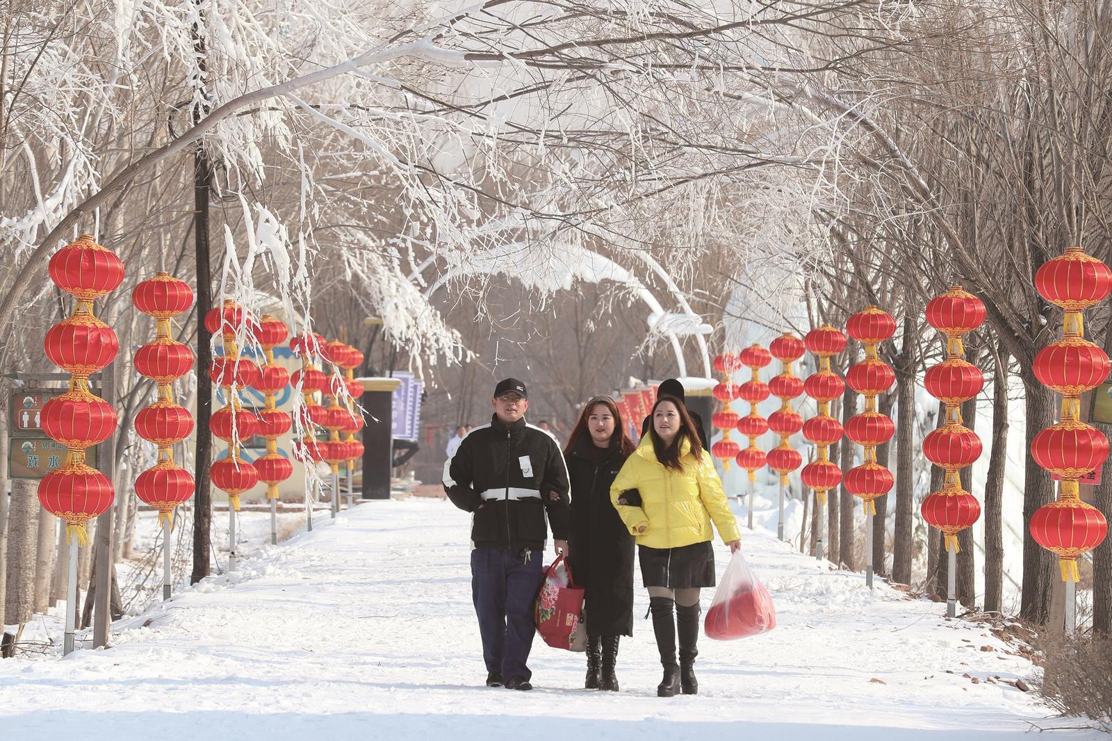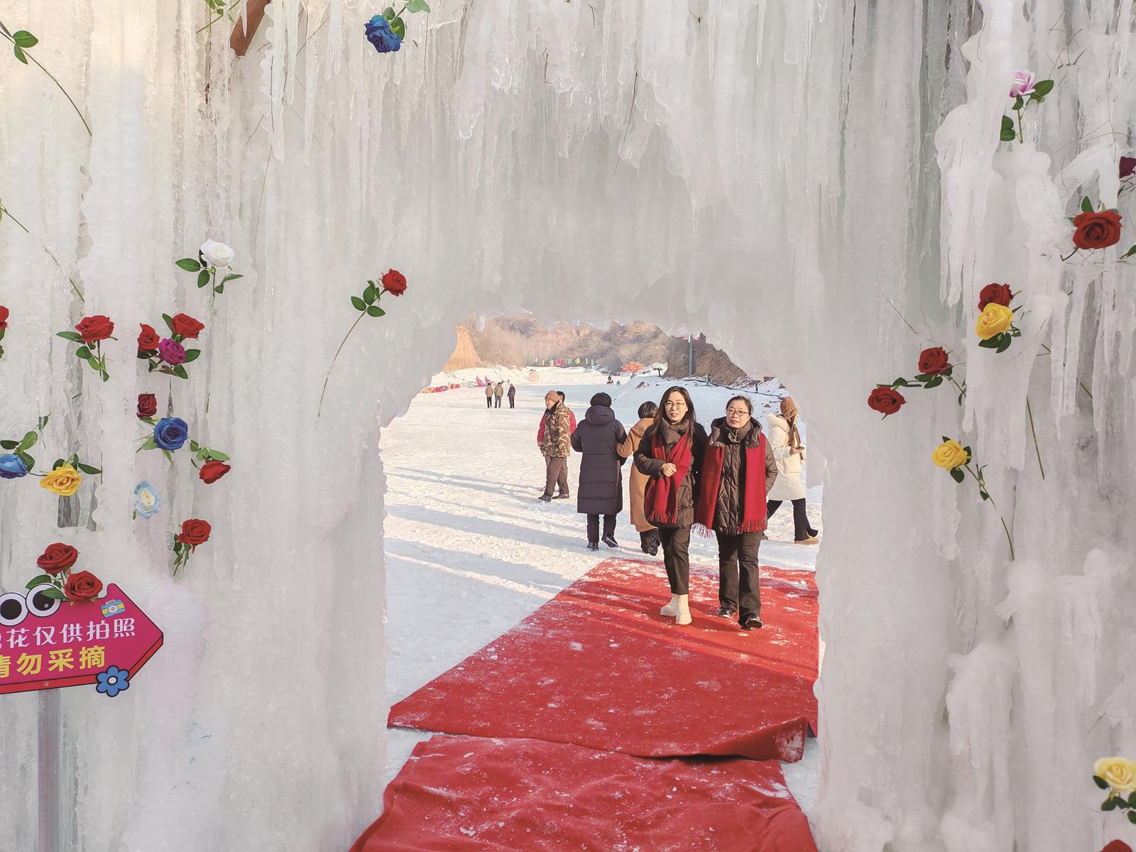 1.游人步入北票市如意山庄冰雪大世界“仙境”。