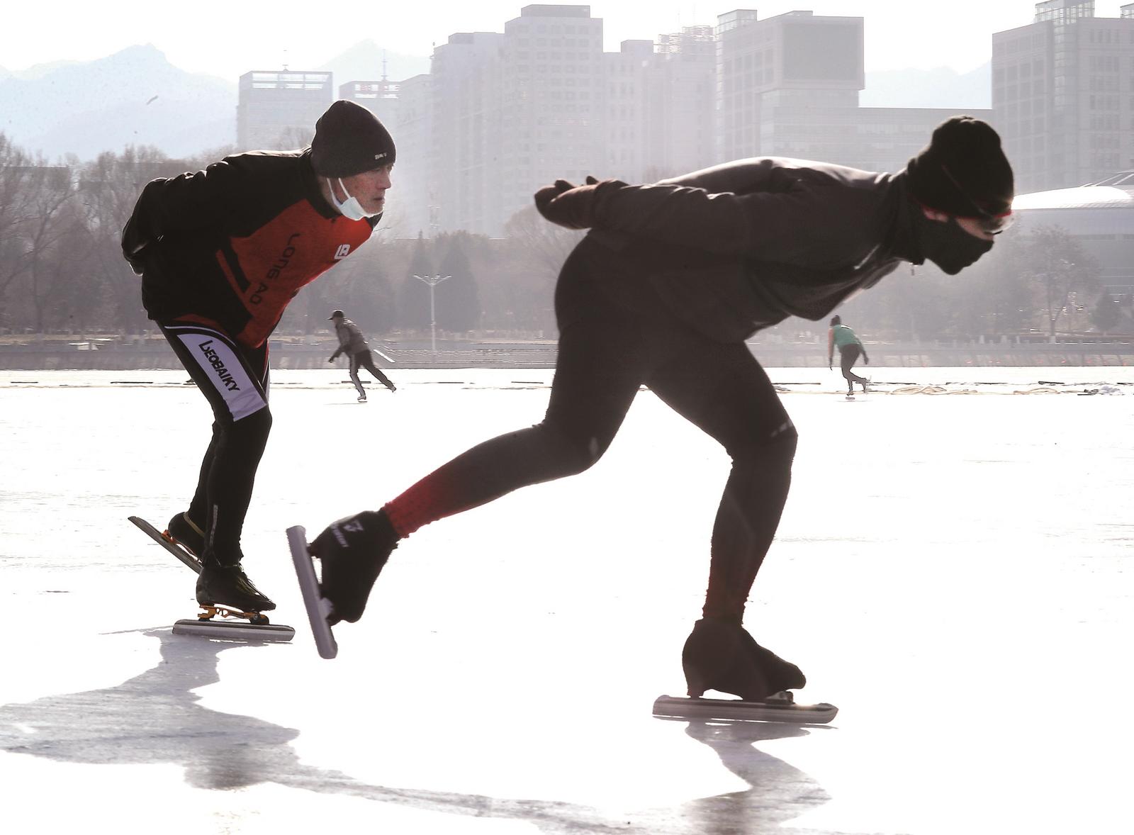6.滑冰爱好者在大凌河冰场挥洒自如。
